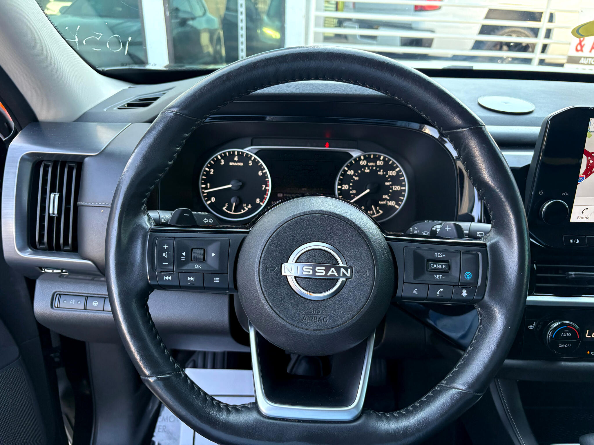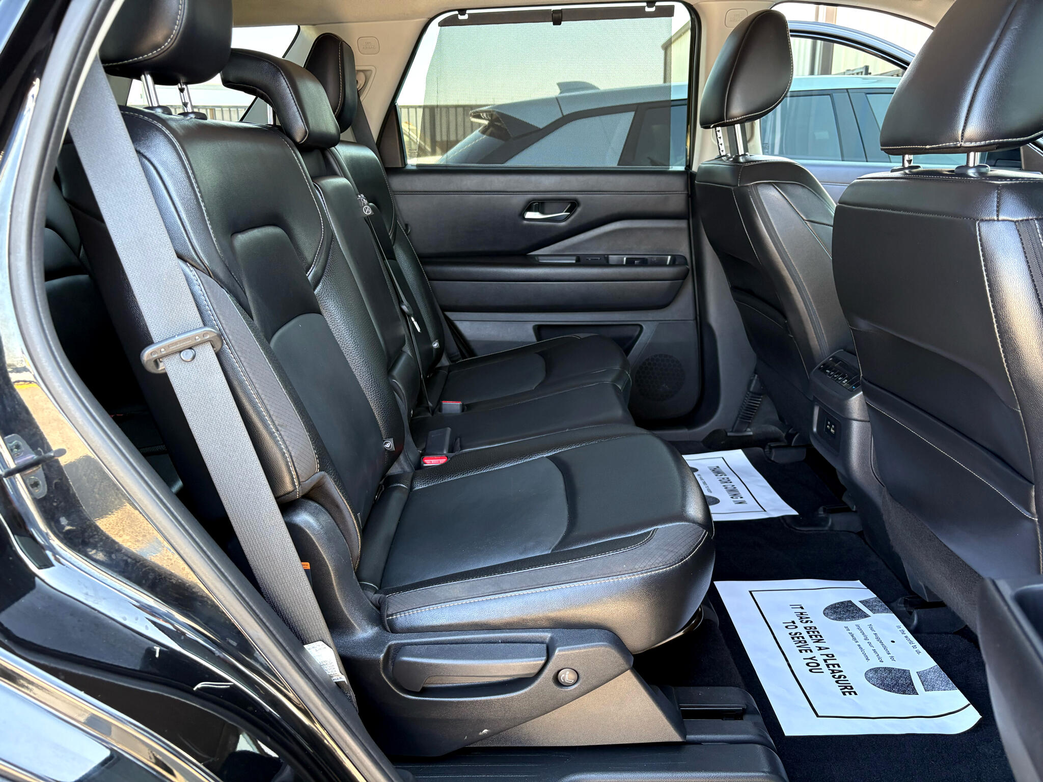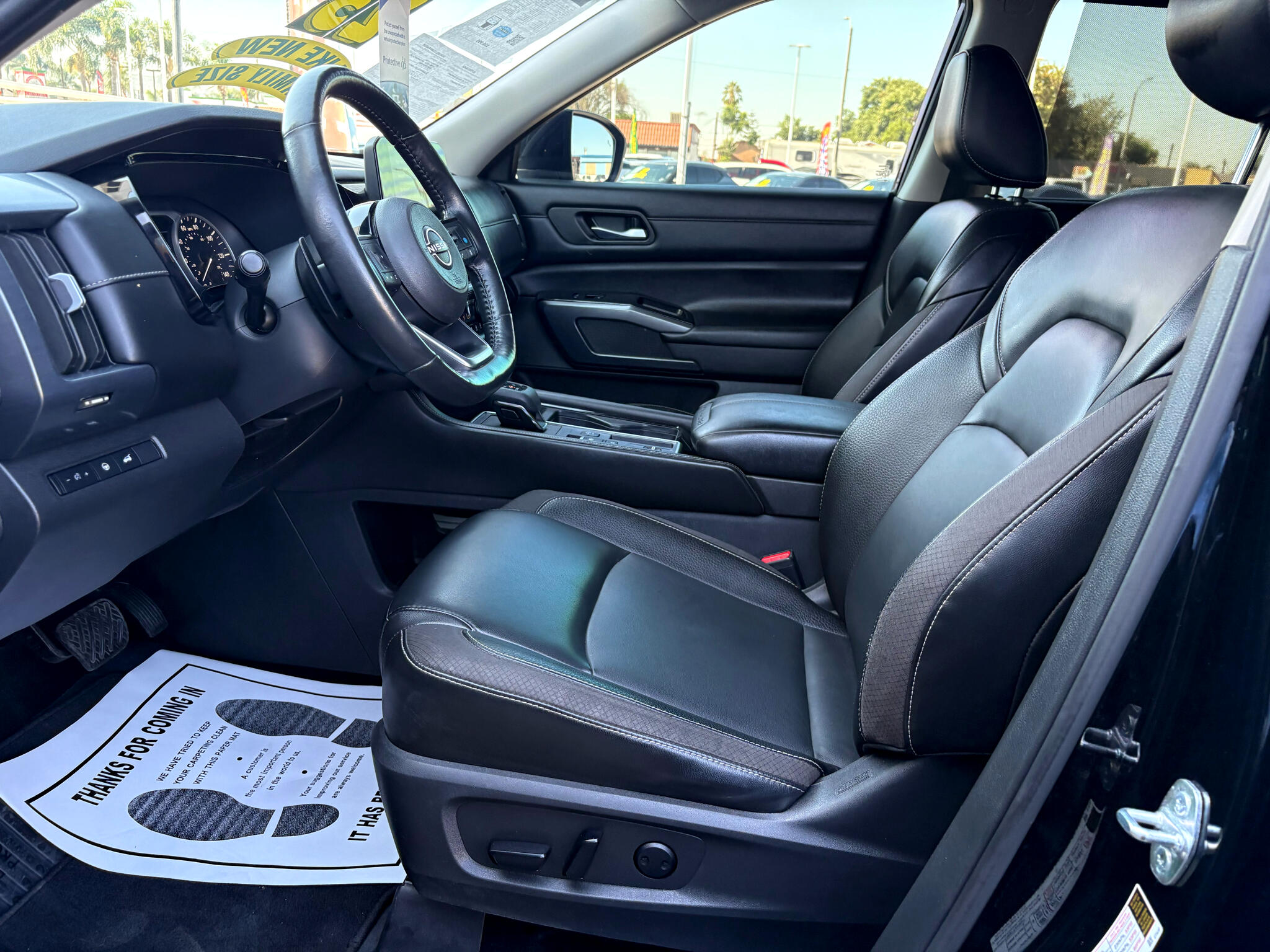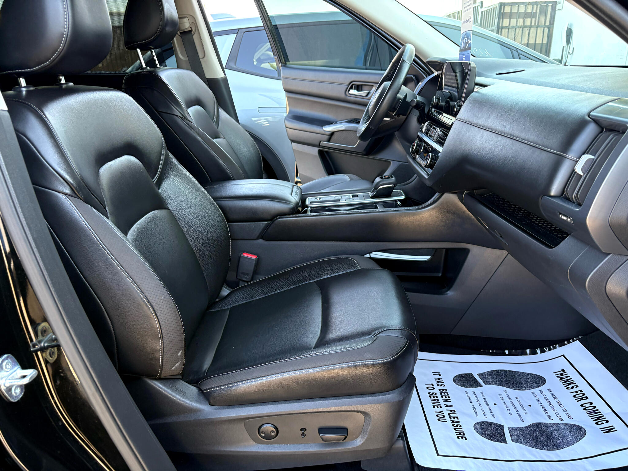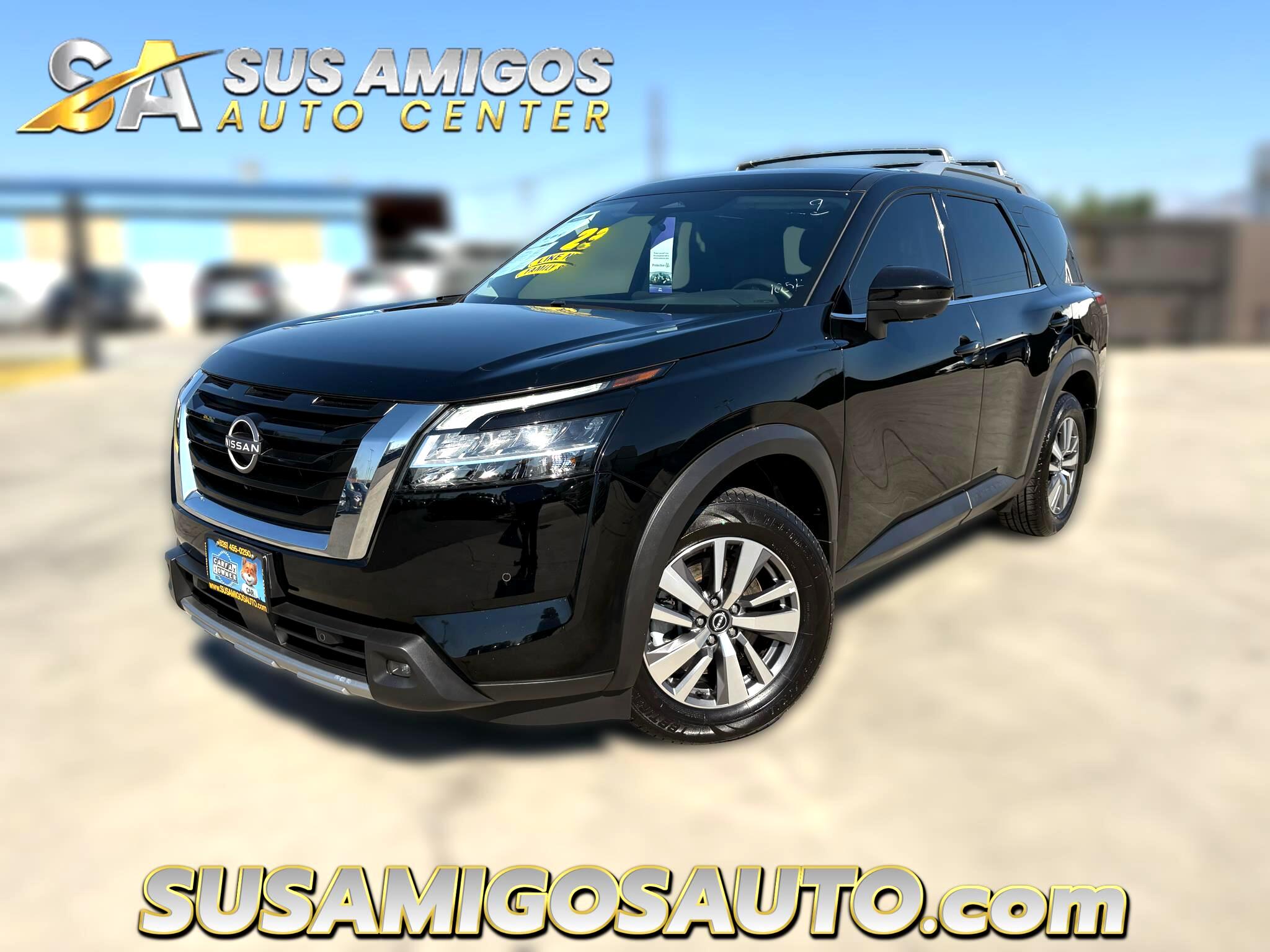 Hop into this sleek black 2023 Nissan Pathfinder and let the adventures begin! Powered by a potent 3.5L DI V6 engine, this Pathfinder is ready to take you wherever you want to go. Equipped with front-wheel drive and a 70-Amp/Hr Maintenance-Free Battery, this SUV is perfect for both city cruising and off-road exploring.The exterior features a stylish chrome grille, LED headlights, and a power liftgate for easy access to the spacious cargo area. Inside, you'll find a luxurious interior with heated leather seats, a leather steering wheel, and a HomeLink garage door transmitter for added convenience. Stay connected on the go with Wi-Fi hotspot capability and NissanConnect services.