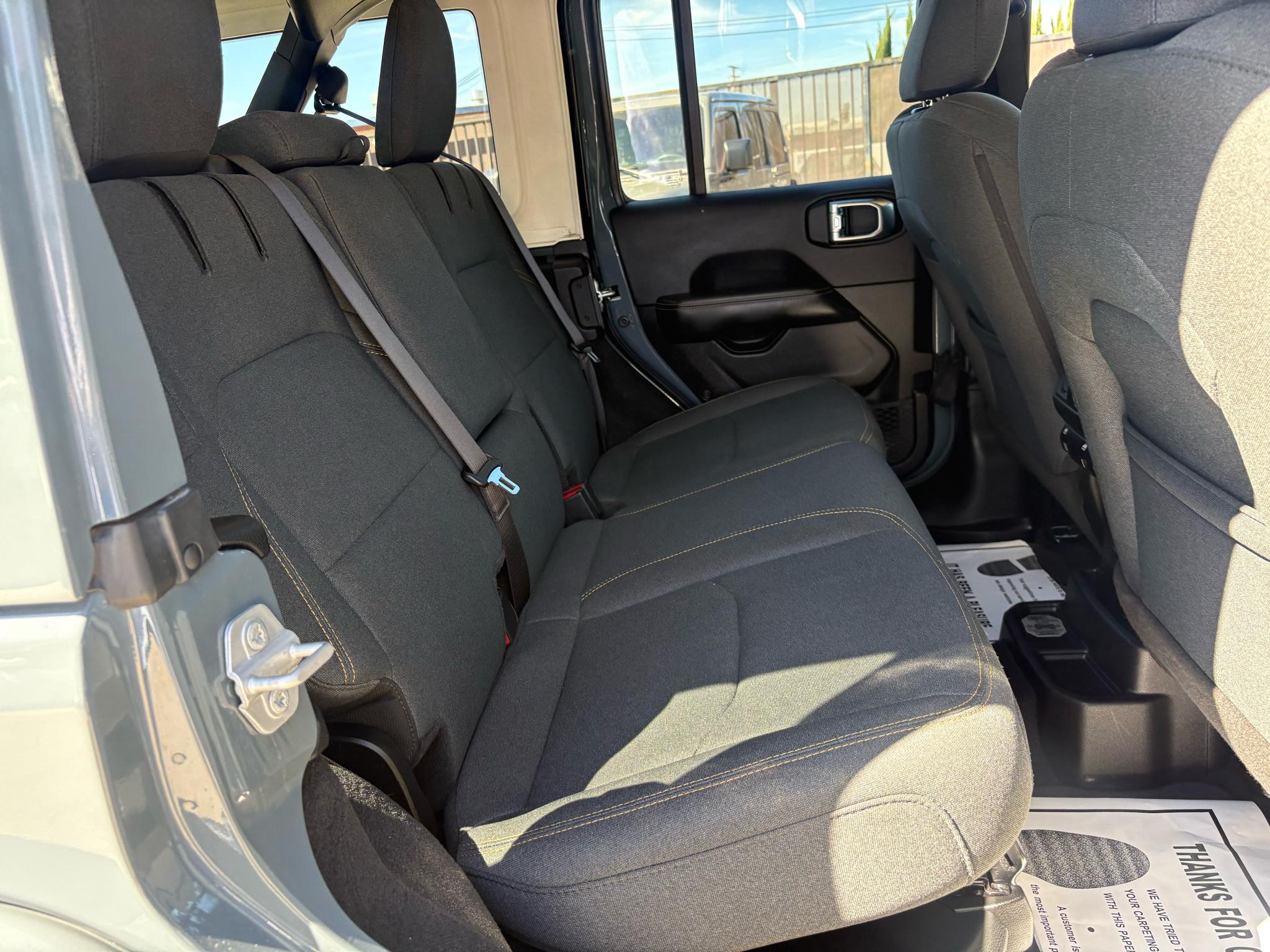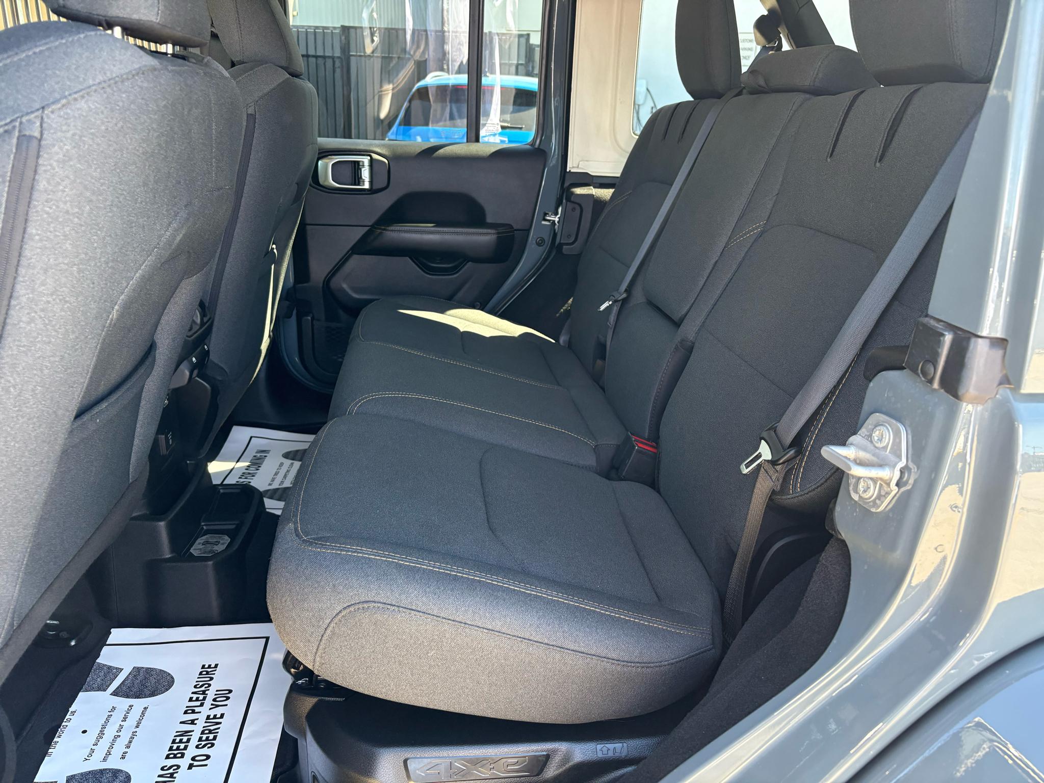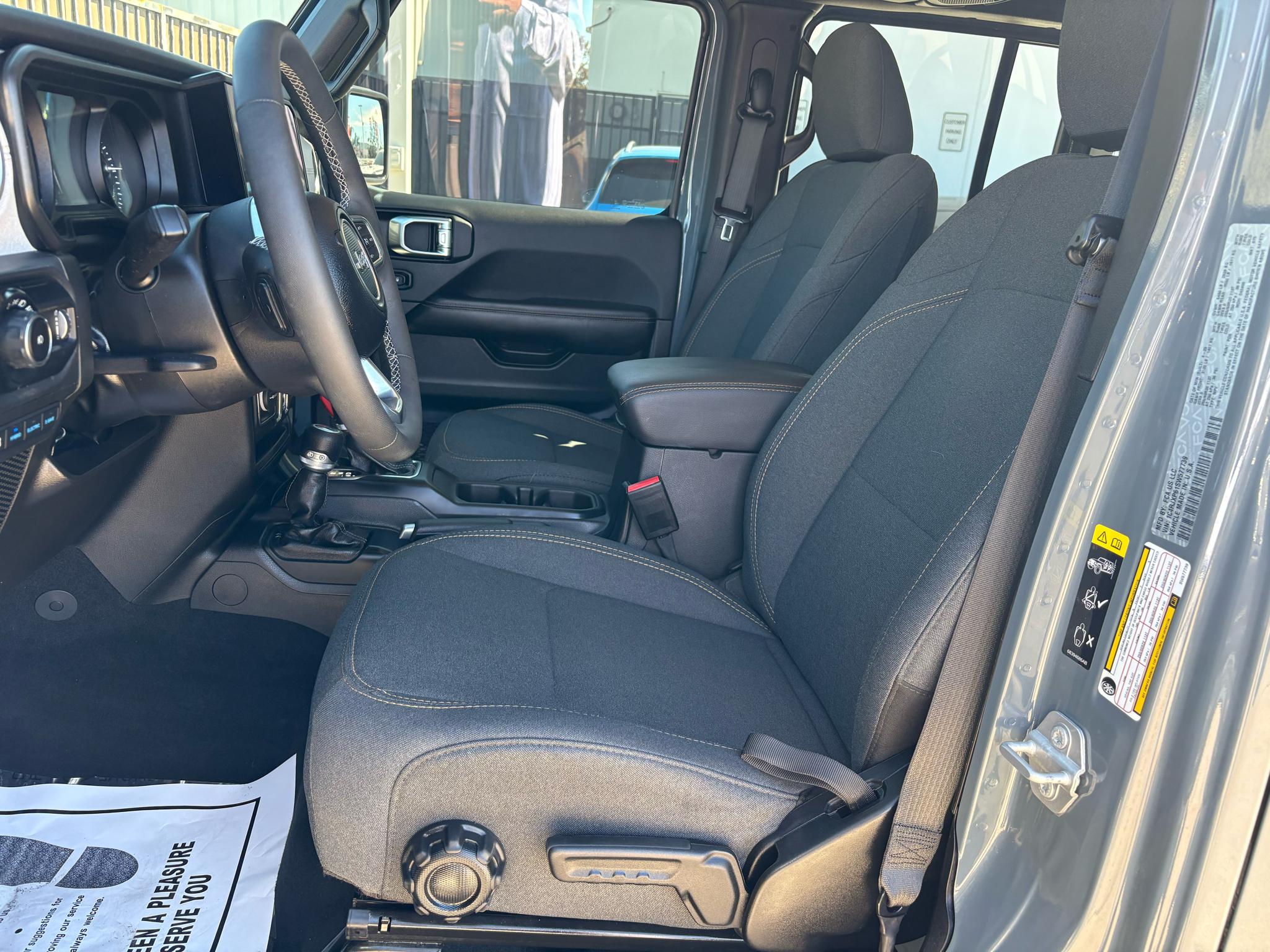 This sleek gray Wrangler comes equipped with Towing Equipment, Skid Plates, and HD Gas-Pressurized Shock Absorbers, making it the perfect adventure companion. The 3.73 Rear Axle Ratio and Auto Locking Hubs provide ultimate control and stability, while the Regenerative 4-Wheel Disc Brakes ensure a safe journey every time.